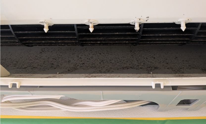 購入後はじめてのエアコンクリーニングです。2015年ということは10年以上前のモノです。設置場所は子供部屋なので、使用頻度は多くないですが、長期間の内部の汚れは蓄積しており、カビも目立ちます。