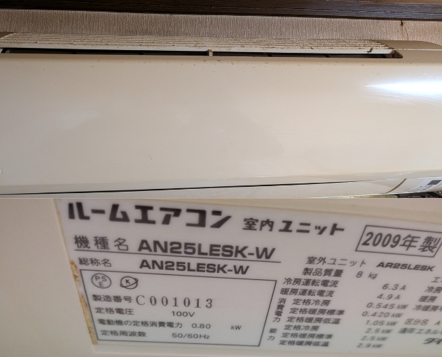2009年製で10年以上前のエアコンなので、故障や破損のリスクをご了承の上作業を行いました。お掃除機能なしのシンプルなエアコンです。