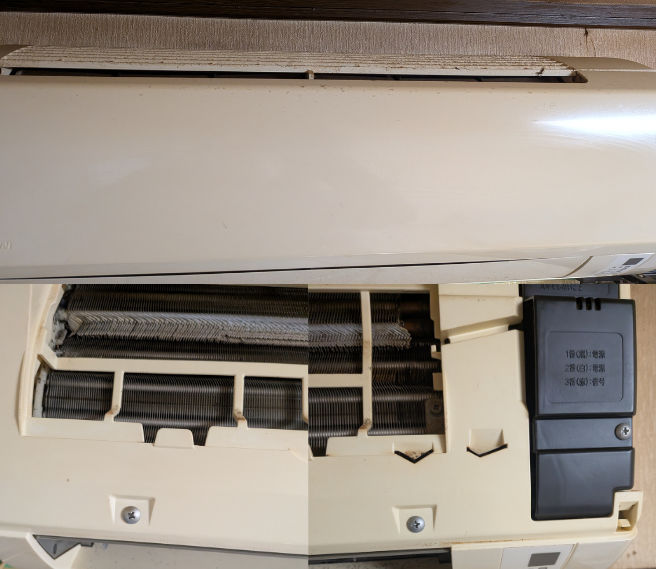 熱交換器は外見からは見えないので、知らぬ間にホコリが付きます。ホコリだらけになってしまうとその分、効率よく熱交換が出来なくなる為消費電力にも影響が出てきます。
