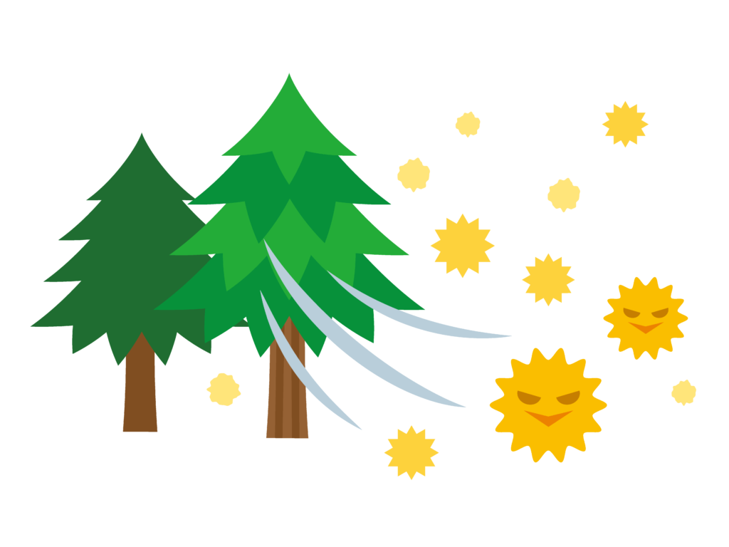 外で1時間いた時の衣類についた花粉の量と、家の窓を1時間開けていた時の花粉の量を比べると衣類のほうが約6倍ついていたというデータもあります。静電気が発生しやすいウールやナイロンは特にです。
